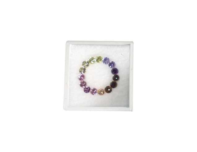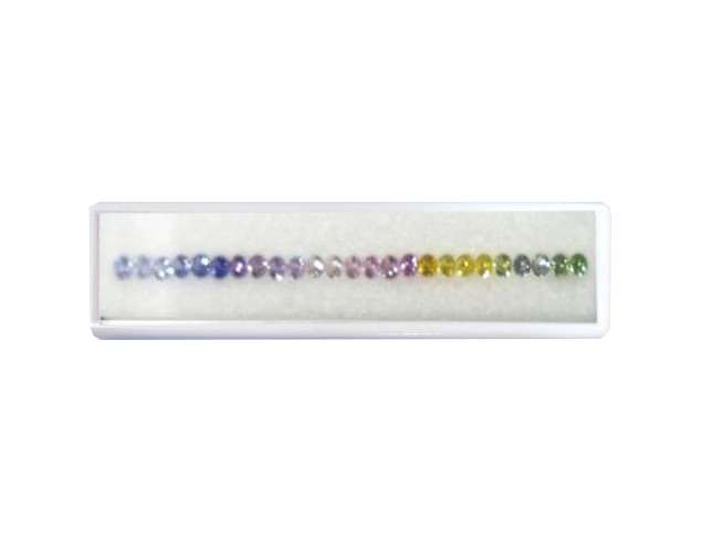 Dive into the vibrant hues of this set featuring thirty-three round-shaped multicoloured MC Sapphire gemstones, collectively weighing 2.33 carats. The playful colours make them ideal for creating dynamic and eye-catching jewellery. (The dimensions and carat weight are approximated.)